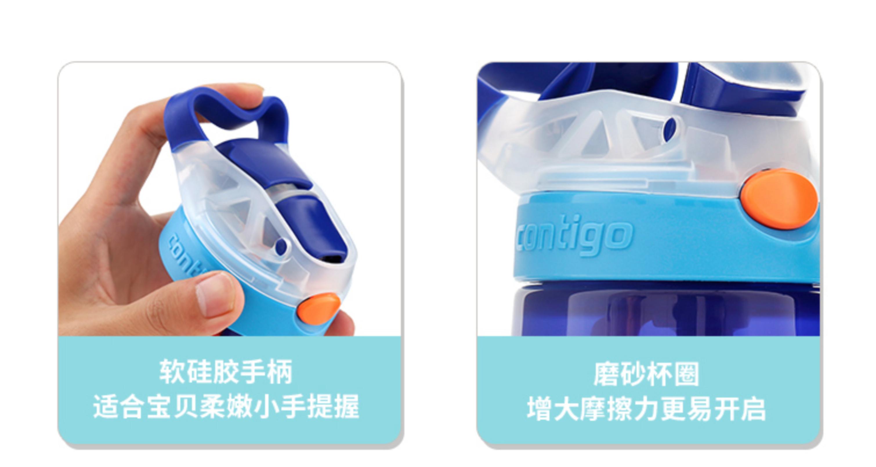 在細節上(shàng)貼合孩子(zǐ)需求是(shì)美(měi)國(guó)Contigo兒(ér)童水(±shuǐ)杯的(de)一(yī)大(dà)亮(liàng)點。扁平的(de)吸嘴貼合孩子(zǐ)嘴型,能(néng)有(yǒu)效防止嗆水(shuǐ)。杯蓋專門(mén)設計(jì)了(le<)進氣孔,維持水(shuǐ)杯內(nèi)外(wài)氣壓一(yī)緻,出水(shuǐ)更流暢。防滑杯蓋避免了(le)孩子(zǐ)擰不(bù)開(kāi)λ杯蓋的(de)麻煩,柔軟手柄更适合寶寶柔嫩的(de)小(xiǎo)手舒适提握。